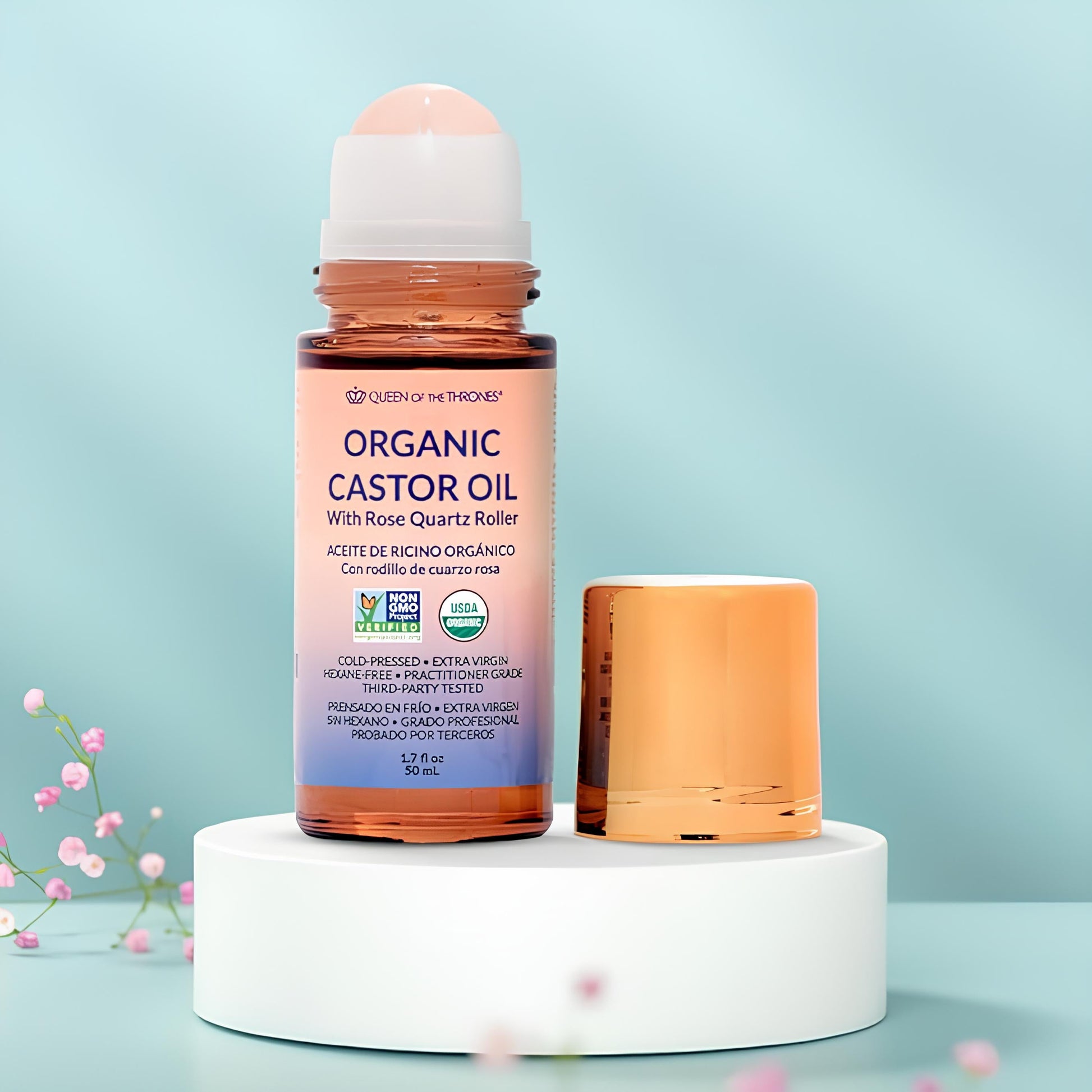 Join the thousands who have elevated their self-care with our Organic Castor Oil Roll-On – your natural solution for deep hydration, relaxation, and radiant skin. With pure, USDA-certified ingredients and a soothing rose quartz applicator, it makes you feel calm, balanced, and glowing every day.